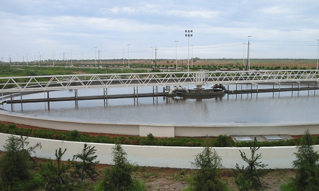 一 用途 全桥式周边传动吸泥机适用于污水处理厂幅流式二次沉淀池。其主要功能是将沉降在池底的污泥刮集至一组半径方向布置的吸泥管管口,再通过中心排泥管排出,以便污泥回流或浓缩脱水。视情况需要,还可以设置池面刮渣机构,收集池面浮渣并通过浮渣漏斗排出池外。 |